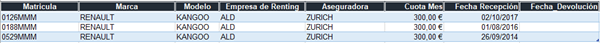 Matricula Marca Modelo Renting Seguro Cuota Mes F_Recepción Fecha_Devolución