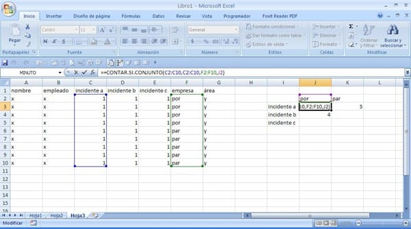 Actualmente estoy manejando una tabla con información en texto en la que contiene nombre, empleado, incidentes (dichos r son incidente a, incidente b, incidente c), empresa y área, necesito que me cuente cuantos incidentes se generaron de A, pero de la empresa POR, cuantos del b y de la empresa POR, para en base a eso hacer una gráfica incidentes