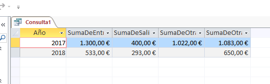 Estoy haciendo una base datos "contable" y quiero resumir el balance patrimonial en una consulta (sencilla o de referencia cruzada). Hay registros que por ejemplo en el año 2016 tuvieron movimiento y en 2017 no tuvieron por lo tanto quiero que en la consulta del año 2017 me aparezcan con el saldo acumulado que tengan todos los registros, pero como en el año 2017 ciertos registros no tuvieron movimientos directamente no me sale el registro.-