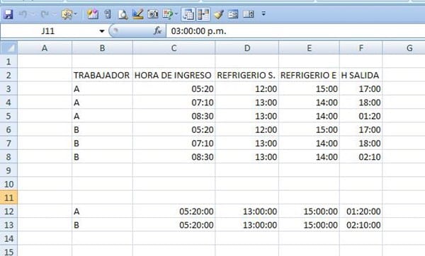 En la columna HINgreso y Refrigerio.S, se debe evaluar la hora más temprana de ingreso, y en las columnas Refrigerio. E y HSalida se debe evaluar la hora más tardía.