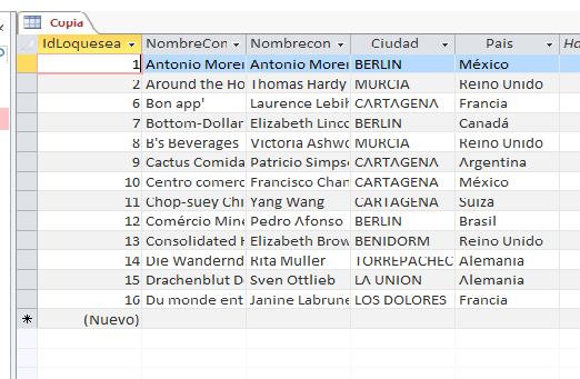 Nota: las dos tablas tienen la misma estructura (Mismas columnas).