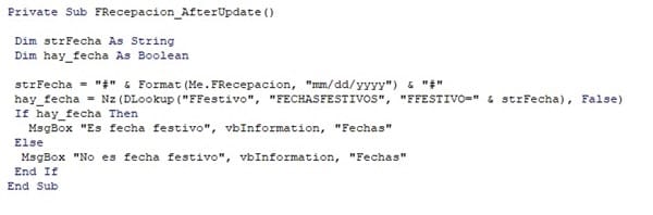 Nombre Campo tabla Festividades: FFestivo