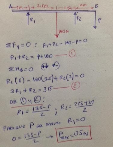 ¿Una barra rígida de 7m de longitud y 180N de peso se apoya a 1m del extremo izquierdo y a 2m del extremo derecho . Que peso máximo se podrá colocar en el extremo derecho para que el sistema permanezca en equilibrio..?