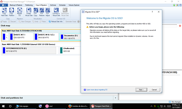 El portatil es un i3 con 4Gb de RAM y 64bits. Los dos discos, tanto el hdd que quiero extraer como el ssd nuevo, tienen conexión SATA III y un tamaño de 2.5".