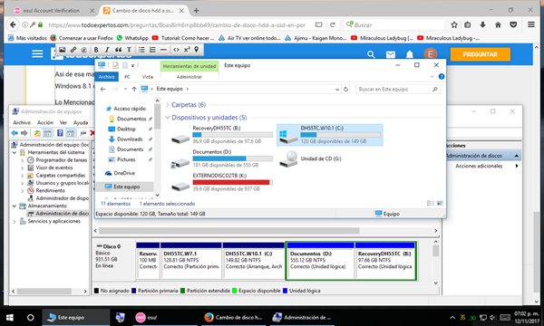 He comprado un ssd de 240 gb y quiero sustituirlo por el hdd de mi ordenador portatil (500gb). Este portatil funciona con windows 8.1 y, básicamente, lo que quiero es utilizar el hdd como externo para almacenaje (he comprado la carcasa también) e instalar windows 7 en el nuevo ssd.