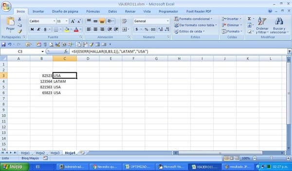 Por el momento la formula que arme esta asi. =SI(ENCONTRAR(8;E2);"Us";"Lantam") El problema es que. Si encuentra los 8 en los codigo. Pero al momento de no contener ningun 8 el mismo codigo me lanza el error #¡VALOR!# . Lo cual no entiendo.