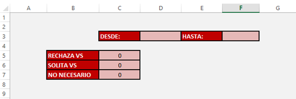 Aquí lo que necesito me haga es que cuente los valores de la columna F tanto de la hoja Baremos como Baremos Old entre dos fechas que yo ponga en D3 y F3.
