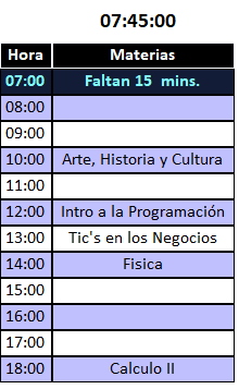 Y cuando sean las 08:00:00 diga "Faltan 2 horas 0 mins" y así...