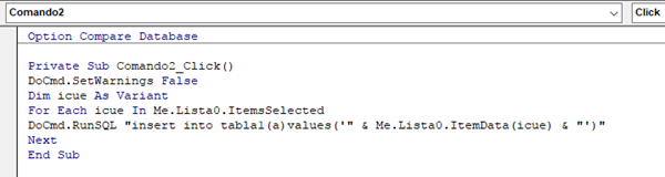 Pasar valores de cuadro de lista con selección multipe a base de datos en access