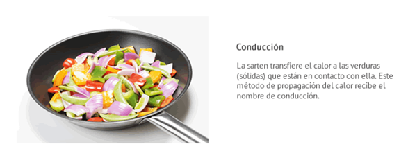 En la conducción dos cuerpos que se encuentran directamente en contacto (o partes de un mismo cuerpo a distinta temperatura) intercambian energía sin que exista transporte de materia. Se basa en la transferencia directa de energía cinética a escala molecular. Cada sustancia tiene un valor asociado de conductividad térmica que indica larapidez con que es capaz de transferir la energía. Su unidad de medida en el Sistema Internacional es el watio por metro y por grado kelvin ( W·m-1·K-1 ). Las sustancias pueden ser: