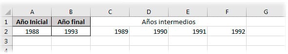 Os cuento, tengo la siguiente duda, estoy intentando pasar un excel que tiene un rangos de años, y me gustaría que si tengo un rango de 1989-1993 me separe en celdas los valores interiores, osea 1990, 1991, 1992. Pongo unos ejemplos en imágenes: