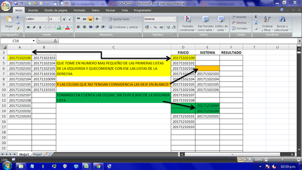 Me gustaria saber si me pudieras ayudar quiero comparar y emparejar 2 listas y una solucion a una pregunta que respondiste (la de la imagen en particular, tal cual se mira) me queda perfecta, pero ejecute la macro (de hecho las 3 que publicaste) pero me da un resultado diferente al de la imagen no soy muy bueno para esto y me gustaria que me echaras la mano para tener el resultado exacto a esta imagen
