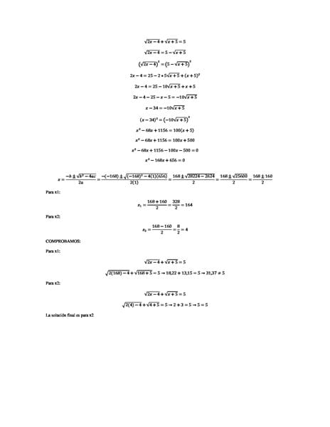 (Raíz cuadrada de 2x-4) + (Raíz cuadrada de x+5) =5