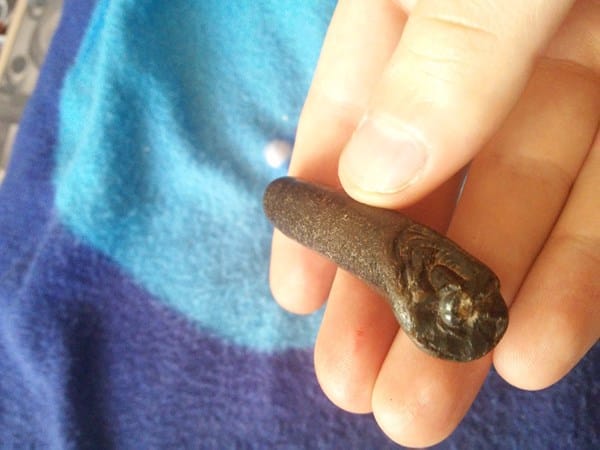Encontré esta piedra hace más de 20 años, su forma es excepcionalmente rara, se asemeja a un dedo humano, tiene el tamaño exacto y hasta puede verse algo que simula ser el hueso! ¿Es este un objeto de colección? ¿Puede tener algún valor?
