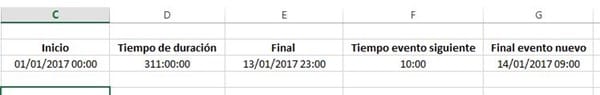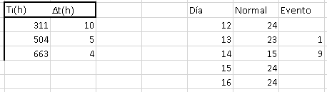 Necesito automatizar un proceso que me muestre cuantas horas de un día se ocupan en un evento. Por ejemplo el primer evento ocurre a las 311 horas y tiene una duración de 10 horas, esto quiere decir que ocurre en el día 13 en la última hora del día (Por lo tanto el día 13 tiene 23 horas de funcionamiento normal y una hora del evento) y en el día 14 ocurren las 9 horas restantes, para volver a su funcionamiento normal(15 horas restantes). ¿Es posible hacer esto con alguna formula o macro?