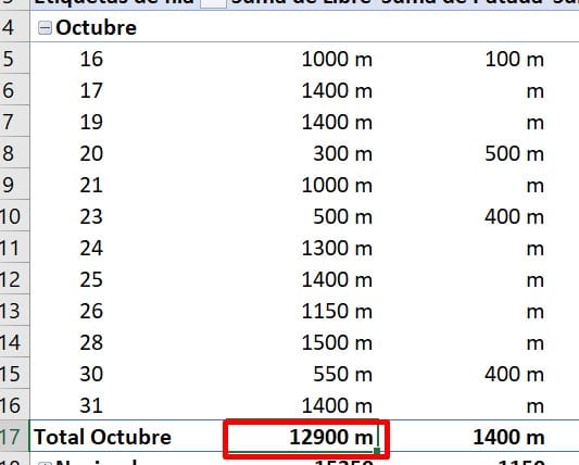 Tengo una tabla dinámica que toma datos introducidos en metros y el total general muestra la suma de estos metros. Me gustaría saber como hacer para que el total general me muestre el resultado en kilómetros, es decir, que aplique un factor de corrección (que divida la suma entre 1000), sin tener que modificar los datos introducidos en la columna.