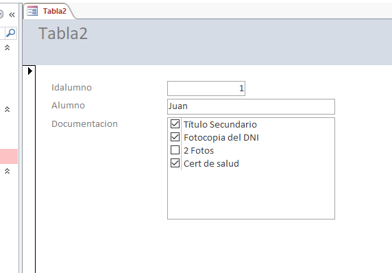En una tabla tengo un Cuadro de Control donde vos podés seleccionar varias opciones dentro de un grupo de opciones que ofrezco. Ahora, necesito hacer un informe donde me salgan las opciones que no seleccioné. Entonces si las opciones son A, B, C y D y seleccioné A, C, y D, necesito que en el informe me aparezca solo B.