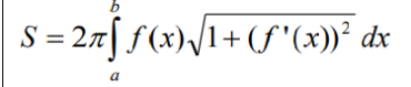 Se hace girar alrededor del eje x. Hallar el área de superficie del sólido resultante. Tener en cuenta que: El área lateral (excluyendo los extremos) del sólido resultante es: