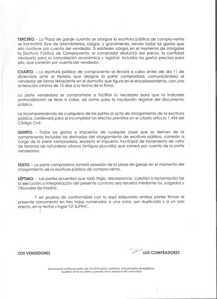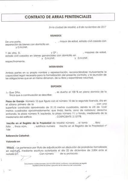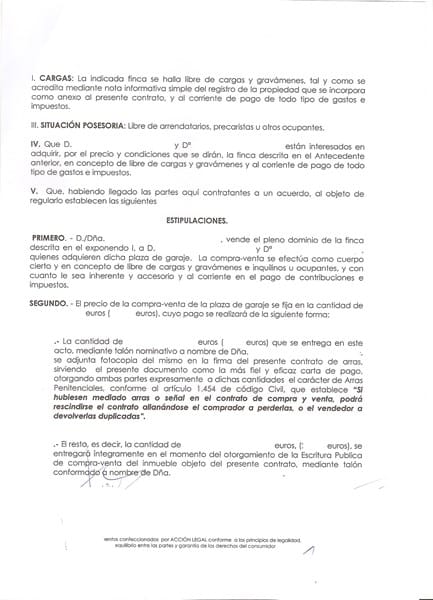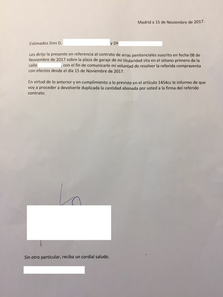 Con fecha de 8 de noviembre hicimos un contrato de arras para la compra de una plaza de garaje. La parte vendedora ha cancelado dicho contrato alegando que los que estaban de alquiler no estaban enterados y se quieren quedar con la plaza. Tenemos un papel firmado por ella, pero aún no se ha hecho el ingreso