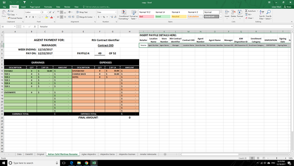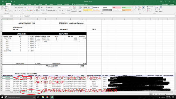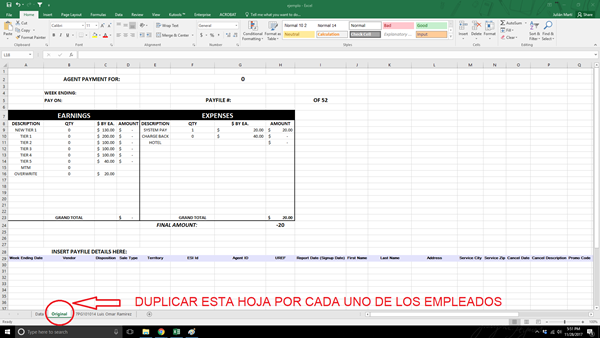 2.-De la hoja "Datos" filtrara una columna "G" (o sea por empleado) y que copiara todo el listado a la hoja duplicada a partir de la celda "A30" por ejemplo y nombrara la hoja con cada valor único de la columna "G" de la hoja "Datos".
