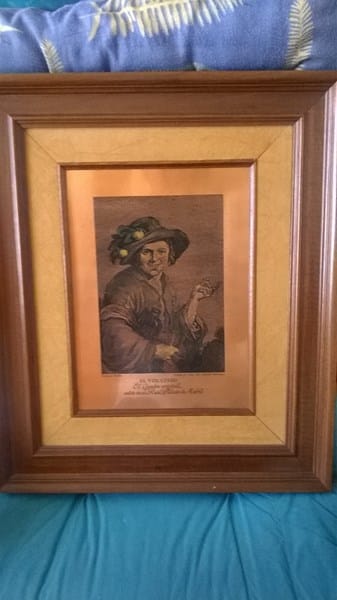 Quisiera saber el precio actual, y la técnica utilizada, de un grabado en cobre de Juan António Salvador Carmona. La obra es el Vinatero, esta en muy buen estado, y enmarcado-ver fotos-. Gracias Un Saludo