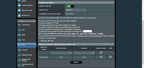 Mi router asus DSL-N16U puede trabajar en modo servidor vpn para crear un túnel por PPTP o OPENVPN.