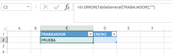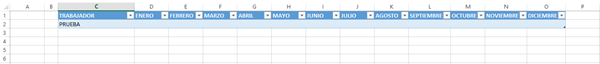 Como se ve en la primera celda de la tabla le puse que fuera = a lo que hubiera en la primera celda de la tabla general para cuando yo pegase hay los nombre de los trabajadores se copiaran todas las tablas de los meses de igual manera.