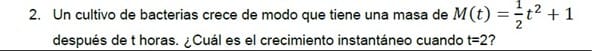 Como Sugerencia: El crecimiento instantáneo es una razón de cambio por lo tanto lo que se tiene que hacer es derivar la función dada y sustituir el valor de t en la derivada encontrada.