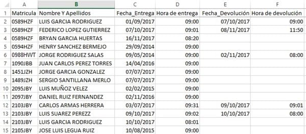 En esta hoja "Conductores" tengo quien lleva el coche,