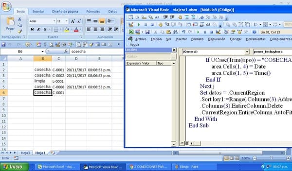2 CONDICIONES PARA UNA MACRO celda c=fecha y hora si la celda b son datos unicos y la celda a = cosecha