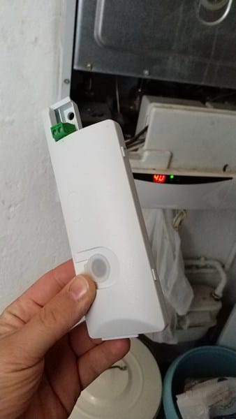 Tengo una caldera Saunier Duval - Thema F24 Nox. He comprado termostato inalámbrico de Saunier Duval modelo E7RC. El problema es que no se donde colocar el receptor. He localizado un cable blanco puenteado que me dijo un técnico que es donde se conecta el termostato. En calderas más modernas el receptor se coloca dentro de la caja eléctrica de la caldera quitando una tapa delantera que la cubre. En el manual de termostato pone que es compatible con el modelo de la caldera que tengo. Me lo confirmaron también en Saunier Duval aunque no me dieron detalles de su instalación.