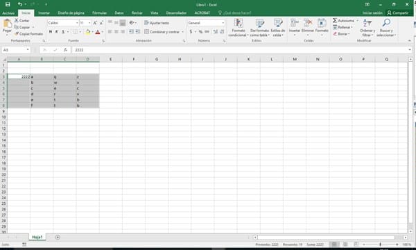 Voy a pegar en una hoja de excel unos datos, por lo que queda un rango seleccionado, la longitud será variable, pongo un ejemplo pequeño: