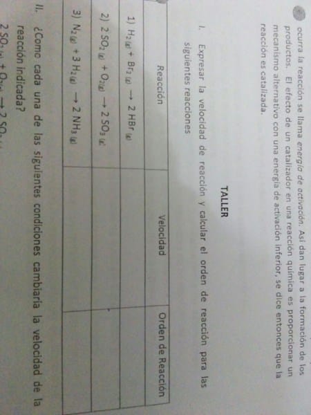 Expresar la velocidad de reacción y calcular el orden de reaacion para las siguientes reacciones, ¿cómo se resuelve?