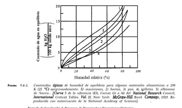 4. En la gráfica se muestran los datos de humedad de equilibrio de algunos productos alimenticios típicos. Asuma en todos los casos que los procesos se dan a presión de una atmósfera.