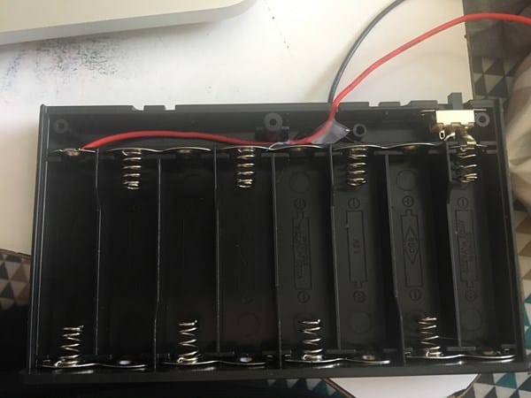 ¿Cómo estás? No sé si me recuerdes. Hace un tiempo te pregunté como conectar un switch on/off para un extractor de aire (Link: Instalar interruptor de velocidades para un extractor de aire). Como me gustó mucho tu manera de explicar, tengo una pequeña duda. Tengo un mini motor DC de 12V, y un portapilas, para 8 pilas doble A, y así hacer los 12V. El problema es que al conectar el portapilas con el motor, el motor no funciona. Hay dos opciones: 1) Que el motor no funcione, ó 2) Que el portapilas no funcione. Para evaluar la opción 1) voy a comprar una batería, las típicas de 9V para ver si lo hace funcionar; si no funciona, el problema sería del motor. Para la opción 2) adjunto imagen, ¿están bien puesto los cables? (El switch, se encuentra en la posición ON)