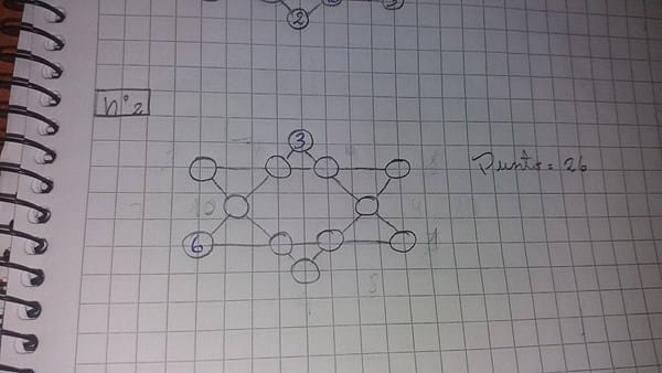 Para el siguiente esquema, en cada círculo va un número igual o menos a 12, el cual no puede repetirse. Al sumar los números contenidos en cada línea de la estrella debe sumar 26, al igual que al sumar los tres lados de cada uno de los triángulos. Espero que me puedan ayudar... Gracias!