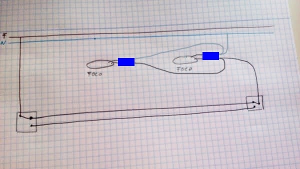 Quiero tener un interruptor al entrar en el pasillo y otro al salir. Que se enciendan y se apaguen los dos focos a la vez.
