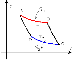 Eficiencia = Trabajo suministrado / Calor absorbido = 1 - T2 / T1 = 1 - Q2 / Q1