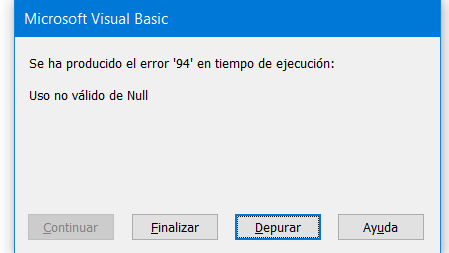 Solo se puede abrir cuando se abre el informe, y funciona perfectamente, pero si intentas abrirlo desde el propio formulario me lanza el mensaje de error que te da la posibilidad de entrar el el código a través del botón Depurar. Ya sé que no tiene ninguna funcionalidad abrir el formulario desde el propio formulario, pero me gustaría poder eliminar de algún modo, si se puede, el mensaje de error que pongo a continuación, para que nadie que abra el formulario desde el formulario pueda tener acceso al código. Espero haberme explicado bien.