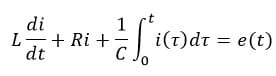 La cual es una ecuación integrodiferencial de un circuito RLC en serie, ya que involucra integrales y derivadas. Afortunadamente, el método de transformadas de Laplace funciona en este tipo de ecuaciones. Además se tiene que: