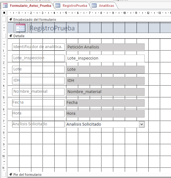 Estoy intentando crear el formulario por el que se introducirán los datos de la muestra.