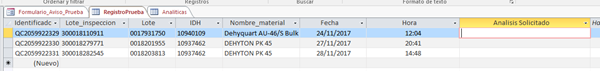 En cuanto al registro de datos es sencillo, después de introducir a mano el campo Lote_inspeccion, se cargan el resto de datos mediante un script desde SAP (Que es la suite que utilizan para gestionar toda la faena). Eso ya está realizado y funciona correctamente