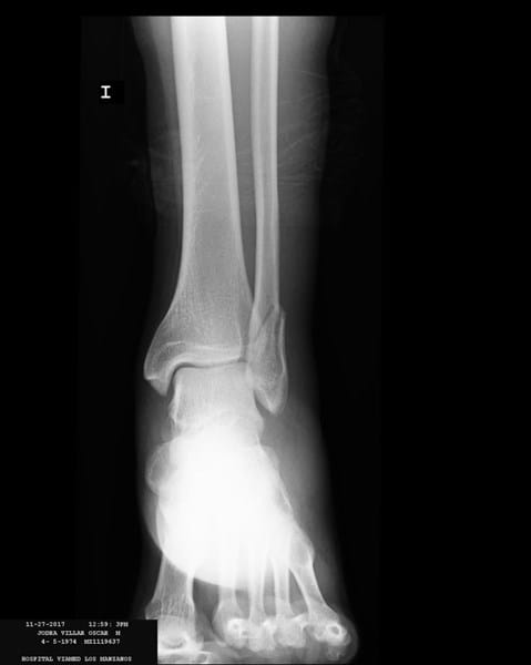 El pasado 25 de noviembre bajando una escalera me retorcí el tobillo izquierdo. Pensaba que había sido un simple esguince y estuve todo el fin de semana con el pie en alto aplicándome hielo y tomando ibuprofeo. El lunes decido ir al medico, me hacen una radiografía y me dicen que tengo: fractura de maléolo peroneo con desplazamiento leve 1,4mm. El traumatólogo me da dos pociones: Una operar o colocar una ortesis fija de tobillo tipo Walker. Después de que me explique que no es necesario operar decidimos seguir adelante con la opción de la ortesis.
