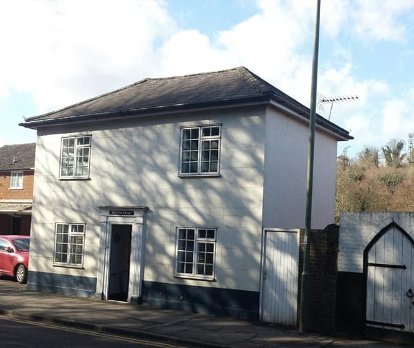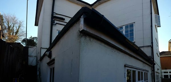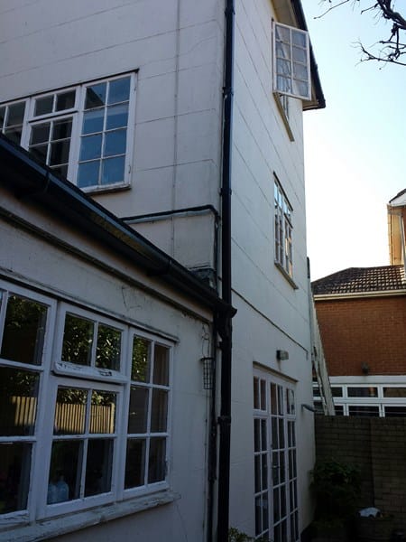 Se trata de una casa de 1890, ubicada en Inglaterra, en un terraplén al pie de una carretera. La casa tiene una planta semisótano (ciega contra la carretera y otro de los lados, completamente vista en el lado opuesto a la carretera y en terraplén en el cuarto lado) y dos plantas más. Sobre la primera planta hay un desván no utilizable (tiene dos depósitos estancos - en teoría - de agua fría y caliente).