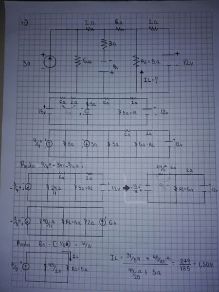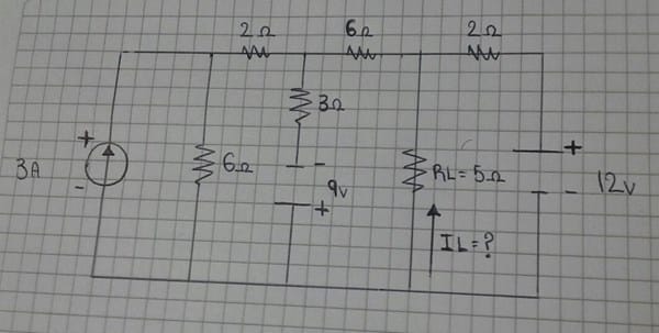 Hola como están, quisiera una ayuda con este circuito. Necesito hallar la corriente de RL(5 ohm) es decir, IL por los métodos de conversión de fuentes (Conversión y superposición) debe dar el mismo valor por ambos métodos, pero no se que estoy haciendo mal no me dan el mismo valor quisiera que me ayudaran