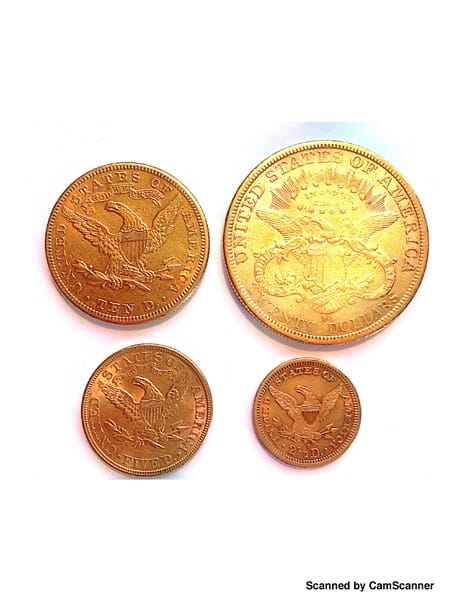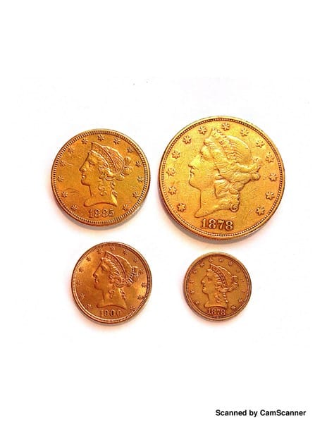 Tengo monedas de oro cuando pueden valer una 20$ de 1878, otra 10$ 1885, otra de 5$ 1900, 2 1/2$ 1878 en excelente estado