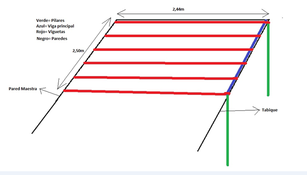 4: Las viguetas, del lado del tabique irían apoyadas directamente sobre la viga principal y unidos a ella mediante 1 escuadra reforzada.