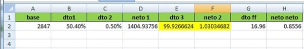 BASE - Dto 1 Dto 2 NETO 1 Dto 3 NETO 2 Dto.F.F NETO NETO