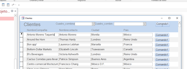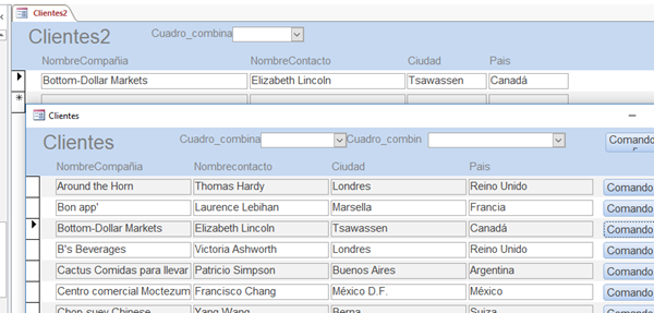 Me busque en formulario Clientes 1, que ya esta abierto el registro especifico sobre el que he efectuado doble clik, y deje en segundo plano sin cerrar el formulario demo.