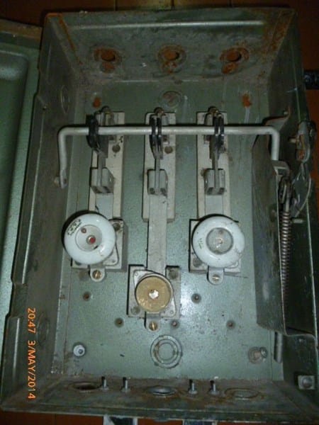 Pues creo que no y me arrepiento de no haberla guardado porque he reformado lo que fué la casa de mis abuelos que tiene unos 50 años y de cada cosa he ido dejando algo para recordar menos de la electricidad. Lo que si guardo son los fusibles que me sobraron pues compré todos los que había en una tienda porque me costó una barbaridad encontrarlos, son fusibles redondos de cerámica y cobre como estos https://cloud10.todocoleccion.online/antiguedades-tecnicas/tc/2010/04/27/18974110.jpg - Andreu Guasp